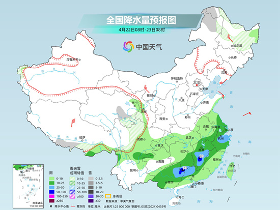 明天,內(nèi)蒙古東北部、黑龍江中西部、西藏東南部、新疆南疆盆地、青海北部和南部、甘肅河西和西南部、川西高原等地部分地區(qū)有小到中雪或雨夾雪;陜西中部、黃淮南部、江淮大部、江漢大部、江南大部、西南地區(qū)東南部、廣西北部、西藏東南部等地部分地區(qū)有中到大雨,其中,湖南中部和南部、江西北部、廣西東北部等地部分地區(qū)有暴雨或大暴雨。